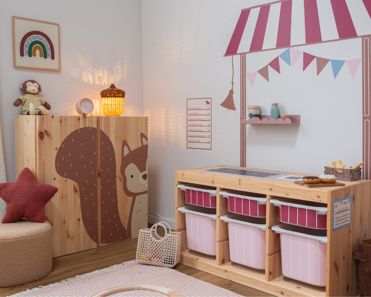 When it gets colder outside and the leaves change colour, cosiness moves indoors. Our Hygge collection brings warm berry tones, soft pinks and natural browns into the children's room - perfect for cosying up, playing and dreaming. Cosy curtains transform the KURA bunk bed into a small cave, lovely animal motifs such as bears and squirrels provide autumnal warmth, and our play tables and wall stickers invite you to enjoy creative moments. Make yourself comfortable - with favourite pieces that provide a sense of security and bring colour into the dark season.